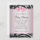 Pink Black Shoes Pink Zebra Baby Shower Invitation