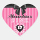 PINK Black Stripes Girly Birthday/Pajama Party Heart Sticker