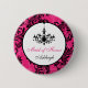 This modern and trendy personalised hot fuchsia pink, black and white chandelier Maid of Honour button has a pink and black scrolls pattern background on it that matches the wedding invitation show below. The text is customisable and so is the shape and size of the button. If you need anything changed, please email niteowlstudio@gmail.com.