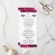 This modern and trendy hot fuchsia pink, black and white chandelier wedding program or order of service card has an ornate scrolls and swirls pattern background that matches the wedding invitation shown below. If you require any assistance customising this with your details, or if you need any other matching items, please email niteowlstudio@gmail.com.