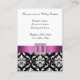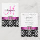 Pink Black White Damask Reception Enclosure Card. Elke Clarke©. Graphics licensed. Elegant black and white damask pattern with a photo print of pink satin ribbon, square brooch with photo print of white diamonds, pink monogram initial on the front and the wedding reception information on the back of the card. Customise with your information and monogram.