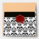 PINK BLACK WHITE DAMASK ,RED WAX SEAL MONOGRAM ENVELOPE