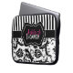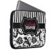 This personalised black and white floral damask laptop sleeve has text boxes for you to customise with your own name, initials, business name, or other text. If you need any help customising, please email niteowlstudio@gmail.com.