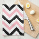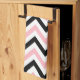 Pink, Black, White Large Chevron ZigZag Pattern Tea Towel