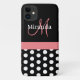 Pink Black White Polka Dot Monogram Case-Mate iPhone Case