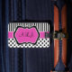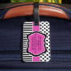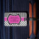 This monogrammed hot pink, black, and white stripes and polka dots pattern luggage tag is fully customisable and would give your luggage a chic and modern tag that would make it easy to spot at the airport. If you need help, or want something changed, email your request to niteowlstudio@gmail.com.