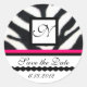 PINK BLACK WHITE ZEBRA FUR MONOGRAM ,Save The Date Classic Round Sticker