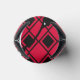This can cooler has a mid-century modern design of solid black diamonds inside black diamond outlines with pink blobs under them, all on a field of white.