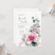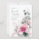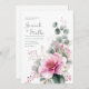 Invite your guests with exquisite charm using this elegant and romantic wedding invitation. The design features a stunning, painterly watercolor floral arrangement, gracefully curving upwards from the bottom left corner against a clean white background. A large, delicate blush pink bloom with intricate stamens takes centre stage, radiating a soft, romantic glow. This beautiful flower is surrounded by graceful sprays of dusty blue-green eucalyptus leaves, delicate fuchsia pink berries or buds, and ethereal gold glitter accents. The shimmering gold highlights add a touch of modern luxury to this sophisticated botanical composition. Ideal for spring or summer weddings, this invitation design is also perfect for elegant bridal showers, garden parties, milestone birthdays, or any event calling for a touch of refined floral beauty. This versatile design can also be adapted for sophisticated corporate events, seasonal promotions, or elegant announcements requiring a modern, romantic touch.