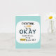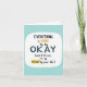 This get well soon greeting card features a clean white rounded square shape with a calming light blue border. Inside, you'll find a mix of font styles and colours creating a motivational quote that reads "EVERYTHING" in bold, vibrant multicolored letters at the top. Below that, "is GOING" is written in smaller black and yellow text, followed by "TO be" in small black text. The phrase concludes with a reassuring "OKAY" in large dark blue letters, and "(and if it's not, i'll be RIGHT by your side)" in smaller black text, with "RIGHT" underlined in cheerful yellow. This card exudes positivity and comfort, perfect for sending well wishes and support. 🌟🌷