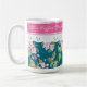 Pink Blossom on Dark Blue with Faux Lace Coffee Mug
