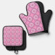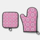 Pink Blossom Retro Tile Pattern Oven Mitt & Pot Holder Set