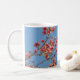 High definition photography of pink blossoms printed on mug. Vibrant blue sky. Customise button left so you can add text such as verse, name or bridesmaid - your choice.