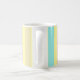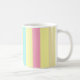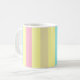 Pink, blue and brown stripes on yellow coffee mug