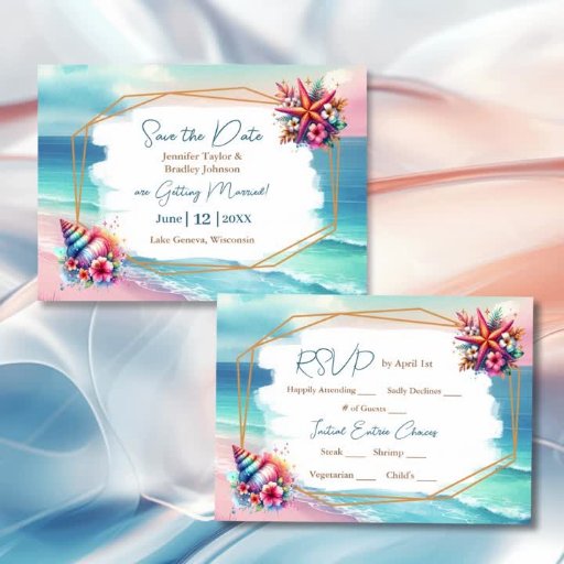 Pink Blue and Gold Coastal Seahorse Beachy WeddingDesigned by Hilton Lisa