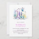 Pink Blue Butterfly Flowers 1st Birthday Party Invitation