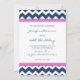 Custom 20th Birthday party invitations in elegant and pretty dark navy blue, fuchsia bright pink and white fun and modern chevron zigzags pattern. Add your name and party details for a unique and stylish 20th birthday party invitation.