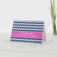 Birthday party thank you cards in elegant bright fuchsia hot pink, dark navy blue and white fun and casual vintage chevron zigzags stripes pattern, the perfect way to thank your birthday party guests. Available in many matching birthday products.