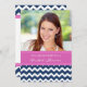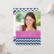 Bridal shower custom photo template invitations in elegant bright fuchsia hot pink, dark navy blue and white casual and retro chevron zigzags stripes pattern, chic and feminine, customisable with your shower details. Also available in thank you cards and invitations for the bridal party.