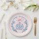 Pink & Blue Damask Crest Christmas Ornament Paper Plate