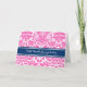Bridesmaid thank you sister card in chic and modern bright fuchsia hot pink, dark navy blue and white vintage floral damask pattern, the perfect way to show your appreciation to your bridal party. Available in matching invitations and a wide selection of other wedding products.