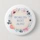 Pink and blue floral bouquet on a blue button which can be personalised with your own text. Provided text says, "World's Best Aunt" but can be personalised to say anything you want. Text, font, font size, colour and placement are completely customisable.