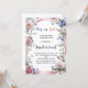 An elegant white background, decorated witth pink and blue wildflowers and a pink ribbon. Personalise and add a name(s) and party details.