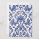 This Housewarming party invitation has a preppy grandmillennial design featuring a Gingerbread House in a snow globe with a blue and blush pink arched border around the edge. The front and back have a coordinating damask pattern.