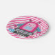 Pink & Blue Girl Robot; Pink & White Stripes Paper Plate