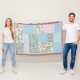 Pink, Blue, Green Apple Blossom Faux Patchwork Throw Blanket