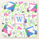 Pink Blue Green Golf Preppy Initial Square Paper Coaster