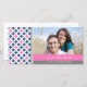 Wedding save the date custom photo cards in elegant and modern fuchsia hot pink, dark navy blue, charcoal grey and white fun and casual retro circles and diamonds bold geometric pattern. Customise these photo cards with your names, photo and wedding date for a truly unique Save the Date card.