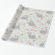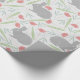 Pink Blue Grey Spring Floral Easter Bunny Pattern Wrapping Paper