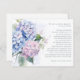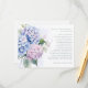 This 4.25" x 5.5" elegant, modern, very chic watercolor Pink Blue Hydrangeas 80th Birthday Card Request Enclosure Card is perfect for requesting no gifts but instead a lovely birthday card with a cherished memory with the Birthday Girl written inside. It's stunning with pink, blue and purple hydrangeas with wispy natural greenery and coordinating bouquet on the back. Include one with every invitation. Guests will love sharing their favourite experiences with the Birthday Girl! She will cherish every memory shared!