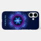 Intertwined pink and blue fractal Stars of David on a dark background. Customise by adding your own text.