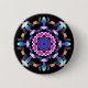 Pink Blue Neon Mandala on Black background makes up this soothing meditative design to be wearing on a button.