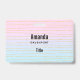 Name tag with a cool abstract pattern. Pastel gradient in pink and blue colours with thin gold stripes. The gold stripes/lines are faux gold glitter.