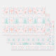 Festive Pink and Blue Christmas Pretty Holiday gift wrapping paper sheets. Red, white, Mint pink and pastel colors, bright and happy. christmas trees birds, hearts, berries, stars.