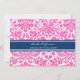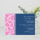 Engagement party invitations in elegant bright fuchsia hot pink, dark navy blue and white classic and chic floral damask vintage pattern. Fully customisable with your engagement party details. Also available in a wide range of matching wedding products.