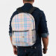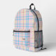 Pink & Blue Plaid Tartan Check Monogram Initials Printed Backpack