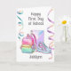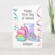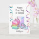 A girly happy first day of school featuring a backpack, notebook and cute shoes along with some pastel streamers against a white background on the front of this first day of school card for her. You will be able to easily personalise the front with her name and the inside card message can also be personalised if wanted. This personalised 1st day of school card is great for middle school and high school.