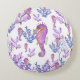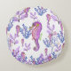 Pink Blue Purple Seahorse Coral Beachy Coastal Round Cushion