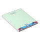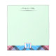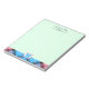 Elegant, stylish and trendy customisable notepad features "personalised name's notes" at the top, "personalised monogram" and pink-yellow plaid tartan at the bottom on Celadon background.