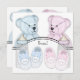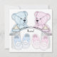 Adorable pink and blue teddy bears, baby bottles and booties baby boy and baby girl twin shower invitation template. Add your details to the front and/or back of this cute pink and blue teddy bear twin baby shower invitation by simply choosing the "Customise it!" button to begin adding your event details, font style, font size & colour, and wording. Please note - all of the invitation designs you will find on Zazzle are printed graphics on flat paper stock with no actual jewels, bows, raised, embossed, or added parts or pieces.