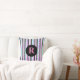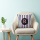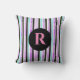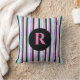 Pink Blue Texture Stripes Pattern Monogrammed Throw Pillow.
