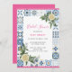Pink Blue Tile Mediterranean Lemon Bridal Shower Invitation