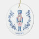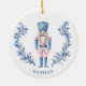 Pink & Blue Toile Crest Nutcracker Ceramic Tree Decoration