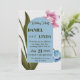 This wedding invitation features blue arched frame at its centre, surrounded by watercolor flowers.The background is white, highlighting the vibrant pink and blue blooms with green leaves, giving it a fresh and elegant look.Perfect for a spring or garden-themed wedding.