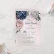 Beautiful botanical bridal shower invitation featuring pink, white and navy blue flowers with green leaves.