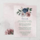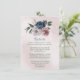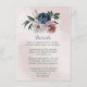 Beautiful botanical wedding enclosure card featuring romantic pink, white and navy blue flowers with green leaves.